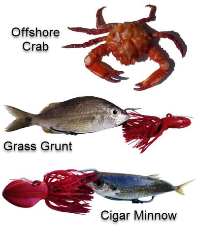 Live baits like jigged-up cigar minnows are candy for grouper, while squid and cut baits will fill the box with big black bass, triggerfish, and various other bottom-hugging species. If you have never tried Tim Barefoot’s Crab Decoy Jig, just bait one up and give it a try - you will be the one that gets hooked in the end! Big grouper love ’em!!!